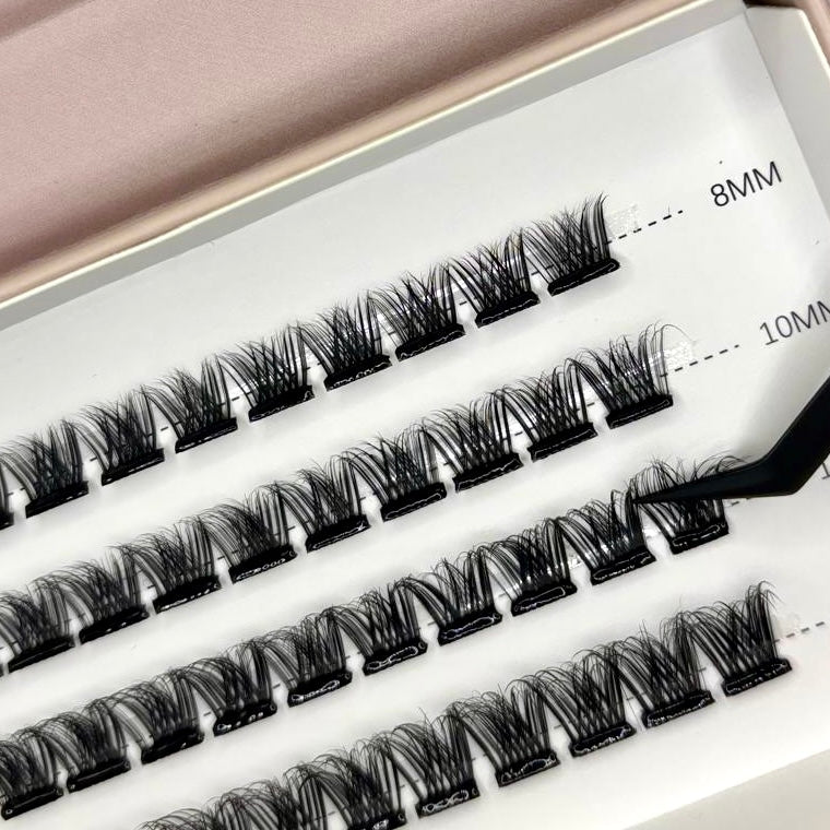Grâce à nos bouquets de cils pré-collés ultra-fins, oubliez la colle traditionnelle :